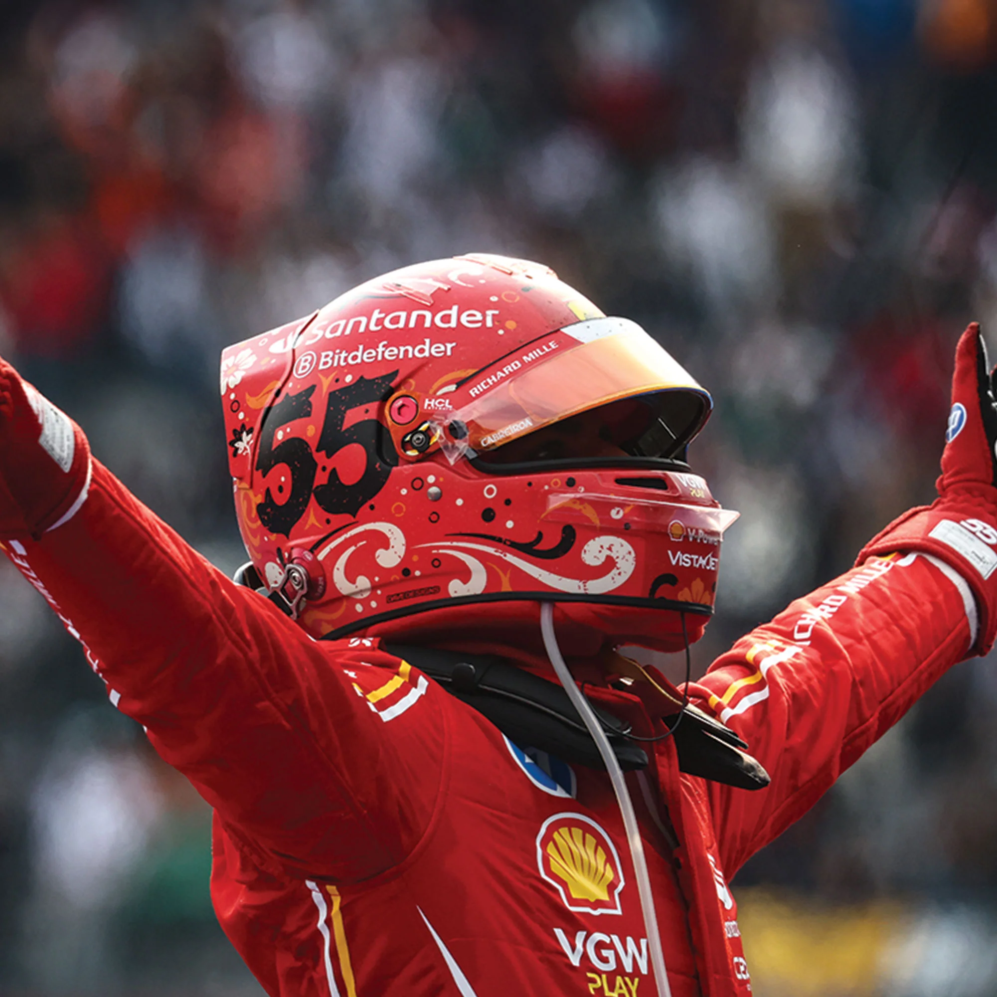 This helmet, inspired by features of Mexican culture, is a perfect replica of the one worn by Sainz when he won the Mexican Grand Prix. Utilising the same processes and materials as the authentic piece, this could be the perfect addition to your collection.Â